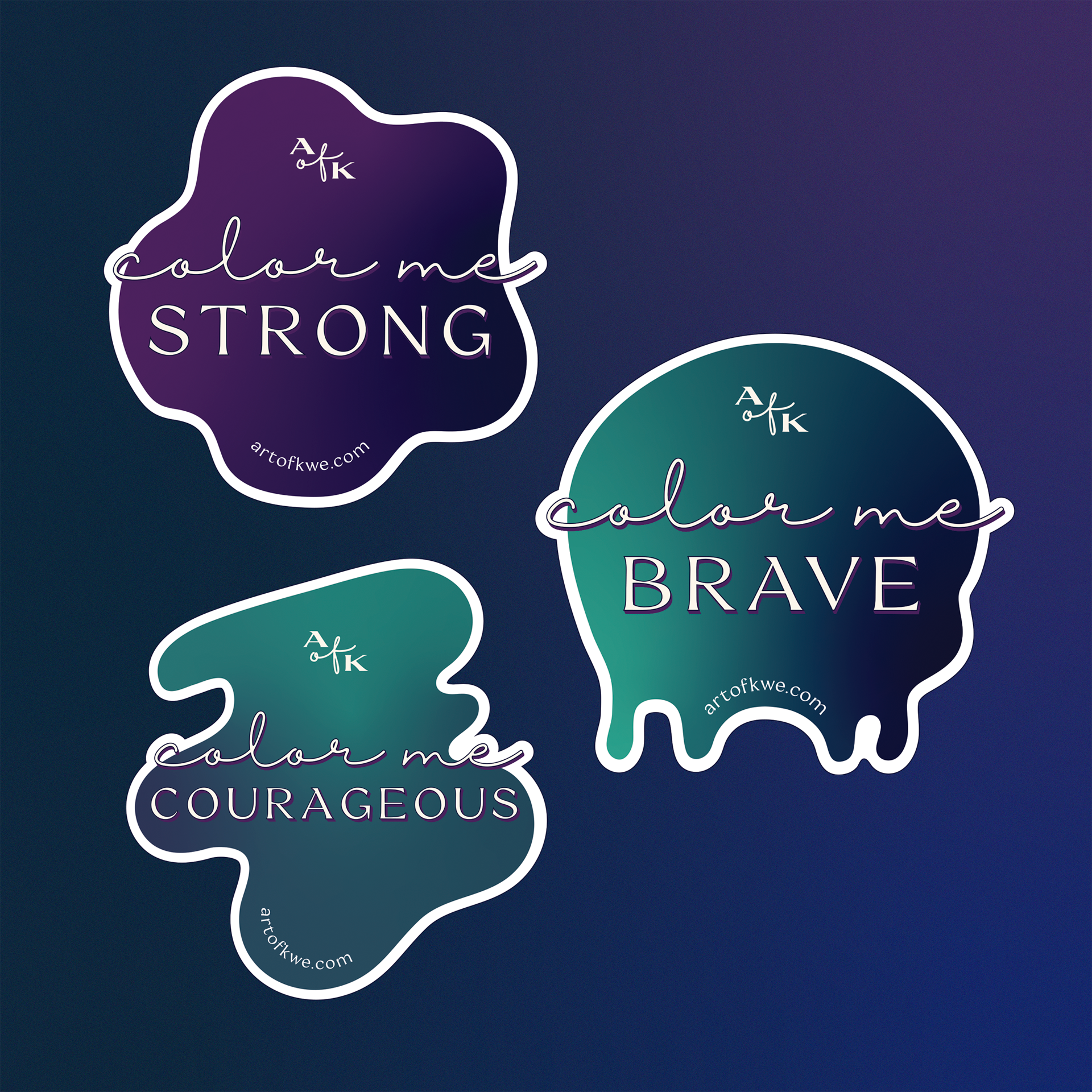 The three stickers: Color Me Strong, Color Me Brave, and Color Me Courageous, serve as subtle yet powerful reminders that true strength is often quiet, not loud. Stick them on your laptop, your water bottle, your mirror, anywhere you could use a nudge to keep going.